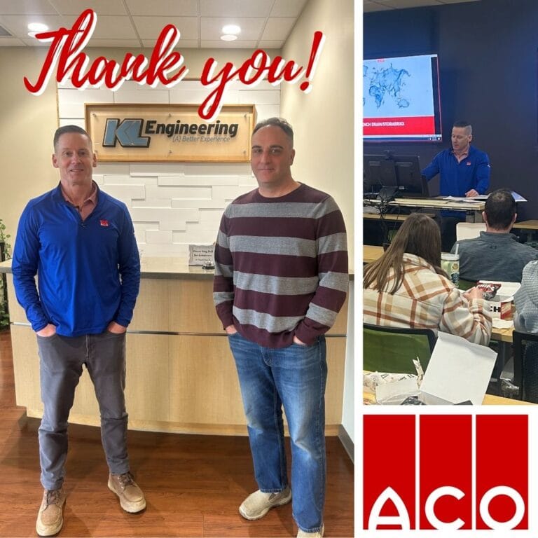 Earlier this month, KL’s Madison office had the pleasure of hosting a “Lunch and Learn” with Water Management Solutions – ACO Surface Water Management. At the event, folks learned guidelines through some example case studies for installing surface water management solutions. Thank you for stopping by, ACO!