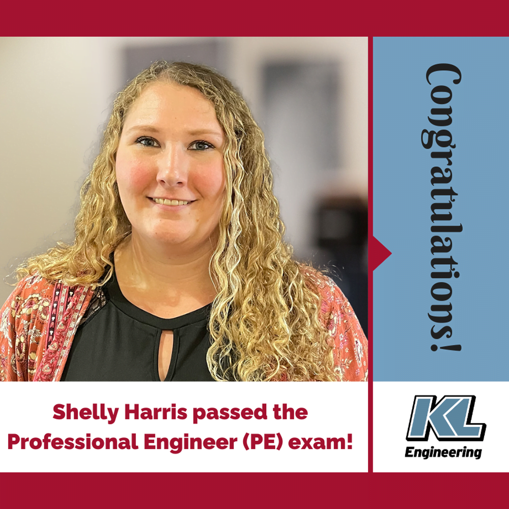 Congratulations to Shelly Harris for passing her Professional Engineer (PE) exam. We celebrate this momentous accomplishment! Shelly has a BS in Civil Engineering from the University of South Dakota and joined KL Engineering in June 2022 as a structural design engineer for KL Engineering’s Infrastructure Services team in the Menomonie office.