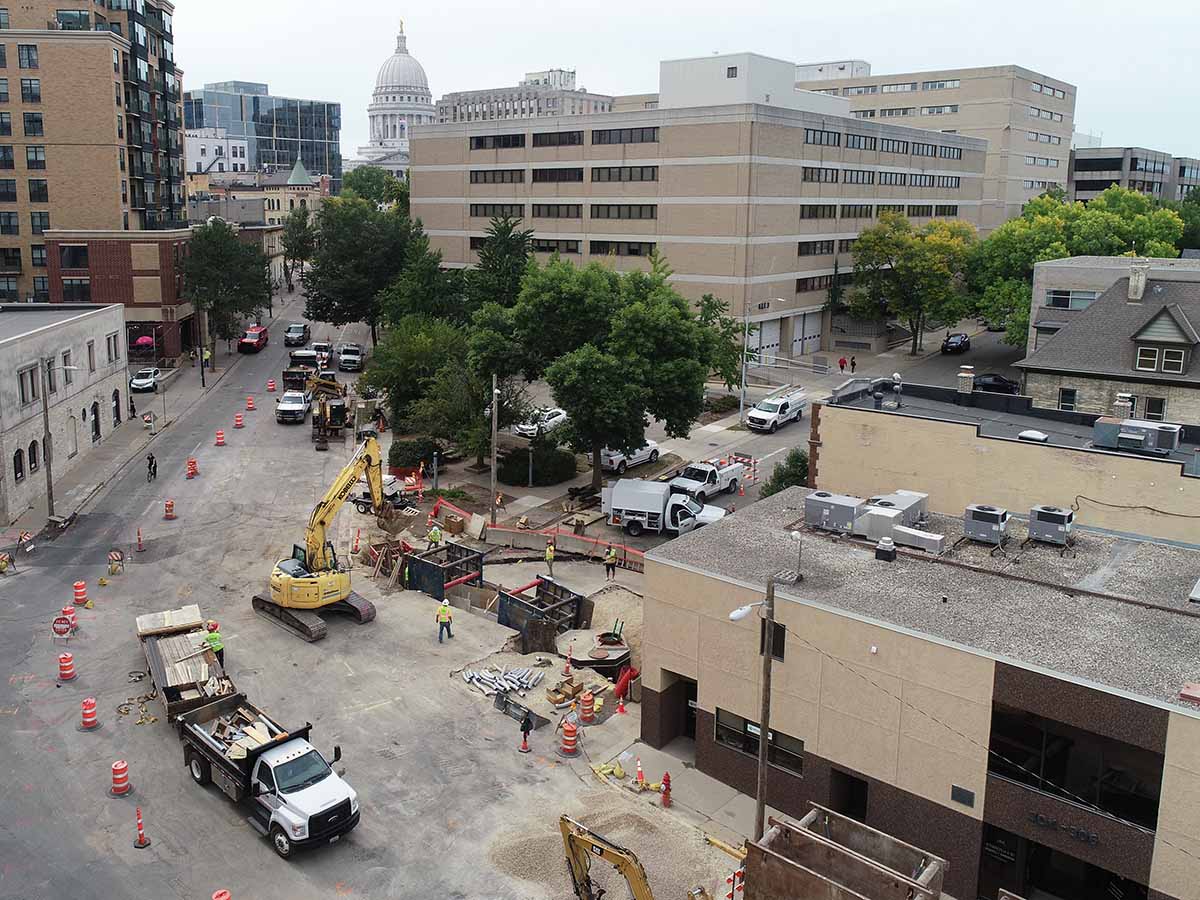 The Wilson and Doty Street Project was important to MGE because it delivers larger and newer infrastructure to serve downtown businesses and residents. Approximately 554 feet of duct bank was replaced on Wilson Street and 820 feet on Doty Street. The project also included 4 new manholes, each approximately 10 feet in diameter.